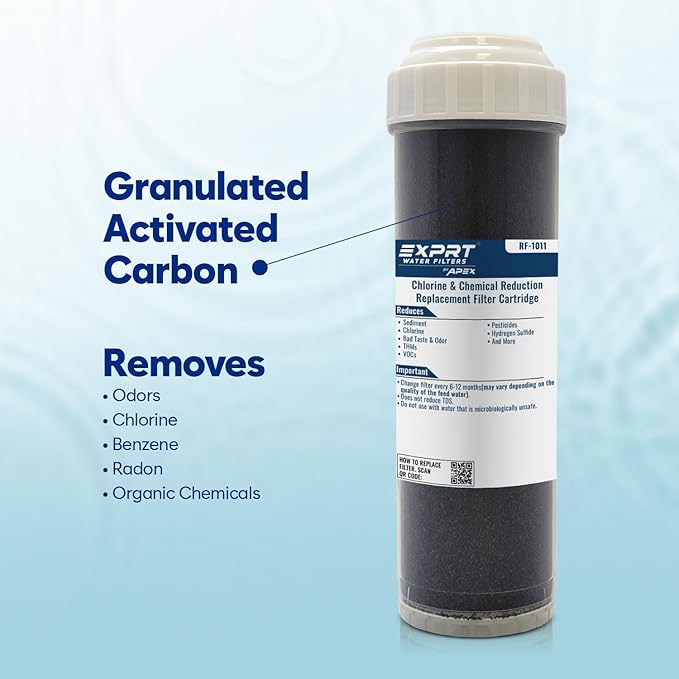 - Multiple Applications: Safe for home, office, & RV use; the EXPRT RF-1011 100% organic granular activated carbon replacement filter provides your family with clean, safe water every pour.