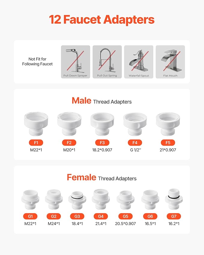 - Simple Installation: The faucet mount water filter comes with 12 adapters, allowing you to select the appropriate one based on your needs. With the included easy-installation tools, setup can be completed in just 5 minutes
