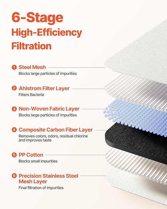 - Efficient Filtration: Equipped with carbon fiber and high-quality filter, the skincare filter efficiently removes 95% of chlorine and chloramine, and effectively filters out impurities as small as 0.01 microns, offering cleaner water for skin care. Note: Suitable for water temperatures of 5–38 °C. Higher temperatures may damage the internal structure and cause leaks.