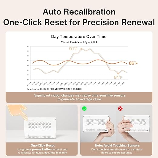 - 【Crystal Clear 7-inch Large Display】Enjoy a 7-inch LED display for sharp, clear air quality readings. Provides an instant, comprehensive view of your indoor air without navigating through menus, with three brightness settings for any lighting condition