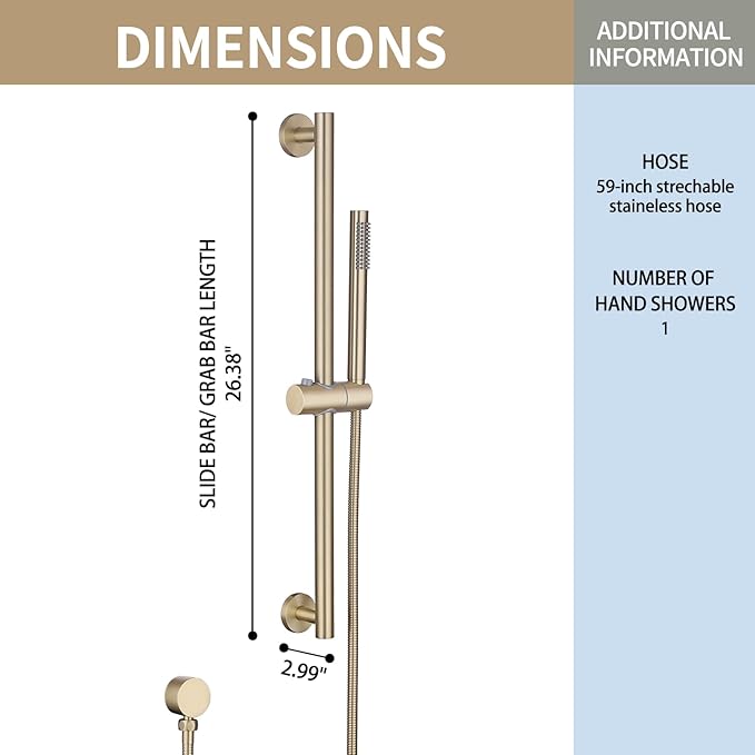 - 【Rustproof & Durable Hand Shower with Hose】Crafted from premium SUS304 stainless steel, the slide bar and brackets resist corrosion and rust, ensuring long-lasting performance. The sturdy yet sleek design is not only easy to clean but also provides a secure, wobble-free mount for worry-free use