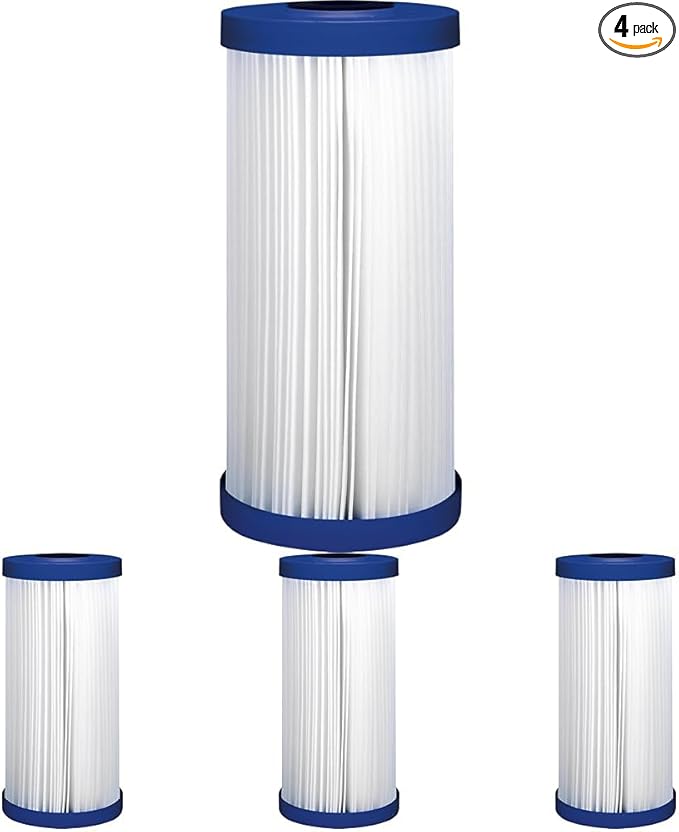 - Product Benefits : Fits most 10" high-flow, whole house, drop-in style filter systems. Reduces sediment, sand and rust. Certified by IAPMO. 3 month filter life. Fits most 10" high-flow, whole house, drop-in style filter systems. Reduces sediment, sand and rust. Certified by IAPMO. 3 month filter life.