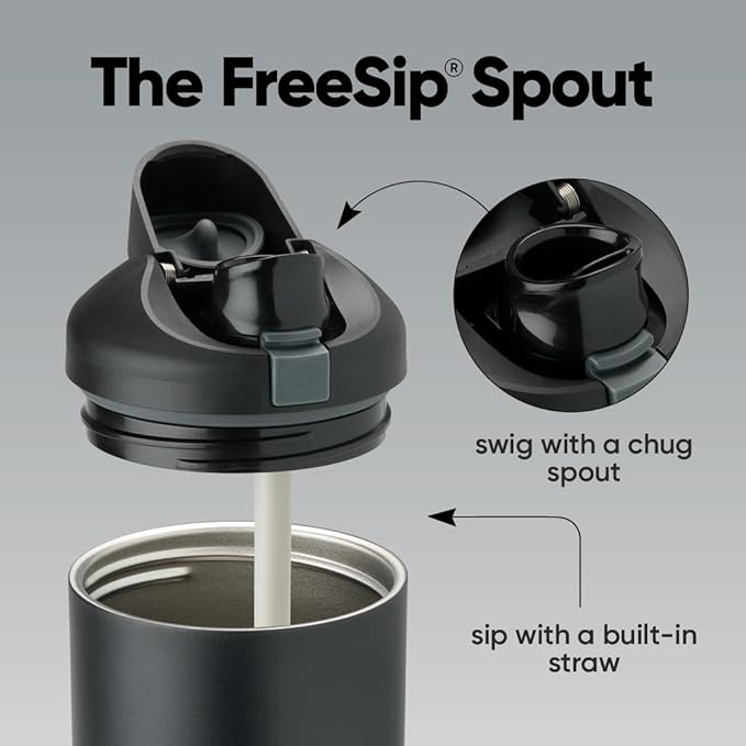 - Versatile FreeSip spout lets you choose how you drink: Patented 2-in-1 FreeSip spout gives you two options when drinking; sip upright through built-in straw or swig by tilting back the spout opening