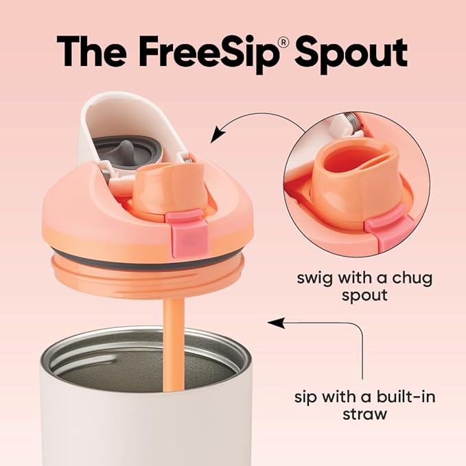 - Versatile FreeSip spout lets you choose how you drink: Patented 2-in-1 FreeSip spout gives you two options when drinking; sip upright through built-in straw or swig by tilting back the spout opening
