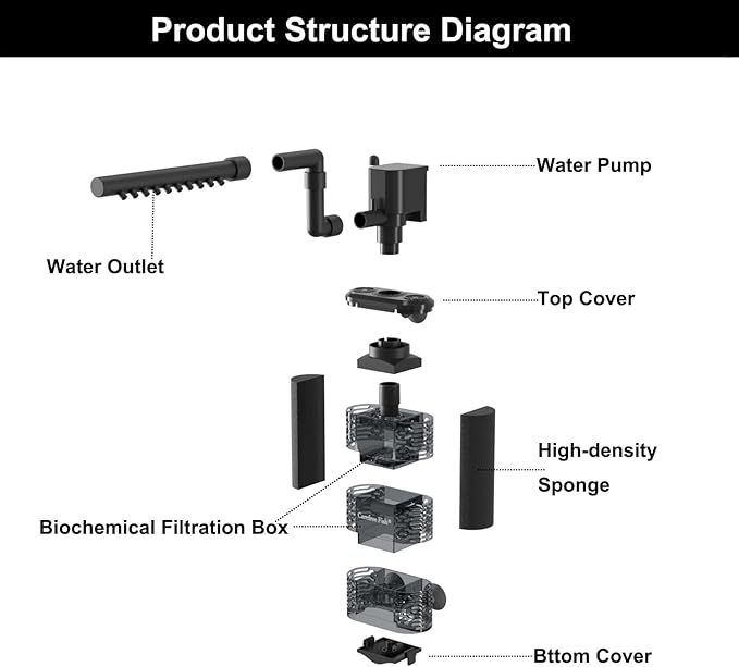 - Changeable Filter Sponge:Sponges can be cleaned and used repeatedly.High-density sponge, which can adsorb tiny garbage particles and clean and filter water. However, the most important function of the sponge is to prevent fish waste and other debris from entering the biochemical filtration chamber, which could affect the nitrifying bacteria system.