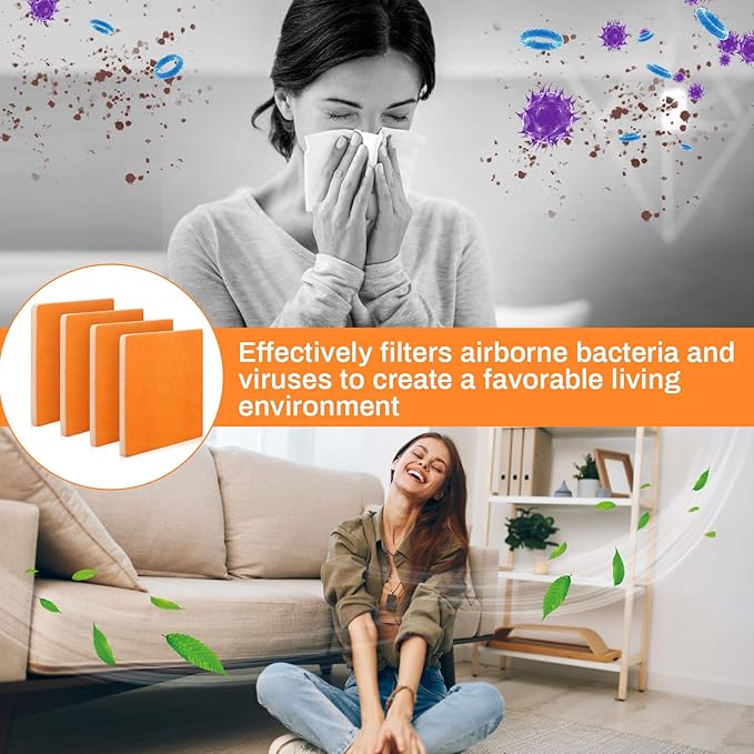 4 Pcs Filters Replacement Pads 10.5 x 10.5 Inches Replacement Filter Pads (Orange, White)