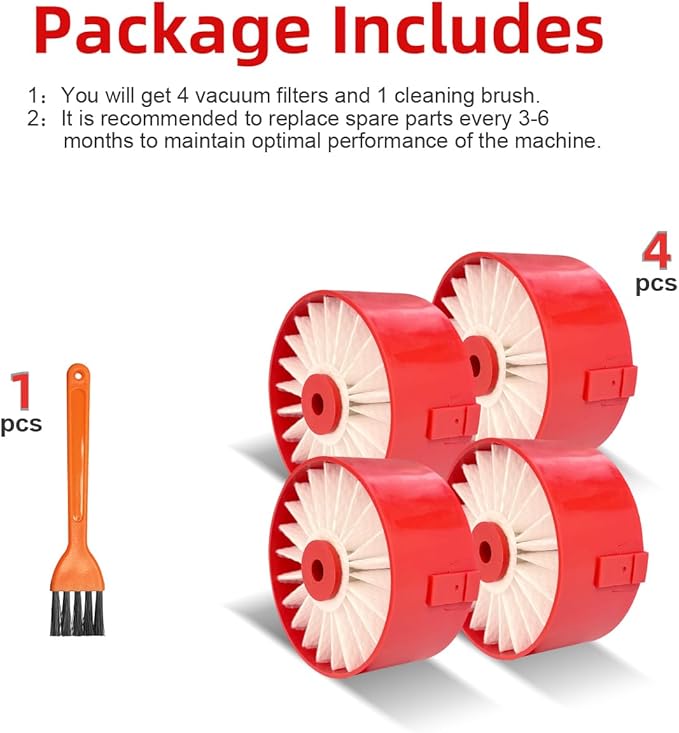- Package Content: 4 Pack BSV2020 Filters and 1 Cleaning Tool. To achieve optimal performance of the machine, it is recommended to replace the filters every 3-6 months.