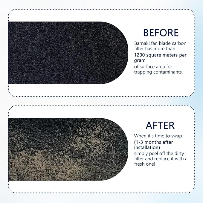 - 【Powerful Air Purification】These ceiling fan filters for blades harness ceiling fan carbon filters for blades technology with activated coconut charcoal. They act as high-performance fan blade air purifier pads, trapping dust, pollen, pet dander, smoke, and VOCs efficiently. Experience cleaner air circulation and a fresher living space as these ceiling fan air filters for blades work silently with every rotation of your fan.