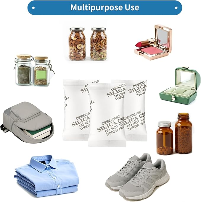 - Higher Absorption Capacity:Silica Gel Packets Desiccant can Absorb 40% of its Weight in Water Vapor,Silica Gel Packets Provides Superior Absorption and will Remain Dry at Maximum Saturation