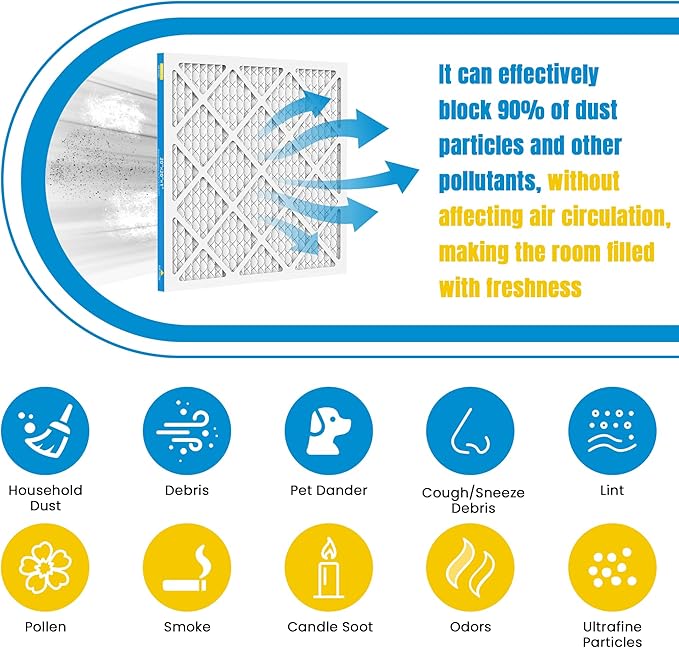 - 【MERV 8 Rated Filtration】Provides effective basic protection by capturing common airborne pollutants.Efficiently traps dust, pollen, pet dander,and other large particles (3-10 microns) to improve indoor air quality and safeguard your family's respiratory health