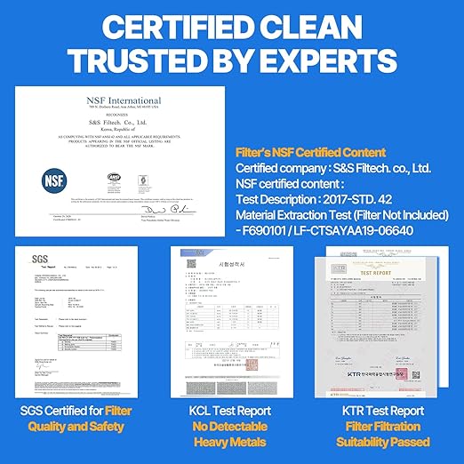 - Special Feature : 1 Year Set of Filters, KCL Test Report: No Detectable Heavy Metals, KTR Test Report: Filter Filtration Suitability Passed, NSF Certified, SGS Certified 1 Year Set of Filters, KCL Test Report: No Detectable Heavy Metals, KTR Test Report: Filter Filtration Suitability Passed, NSF Certified, SGS Certified
