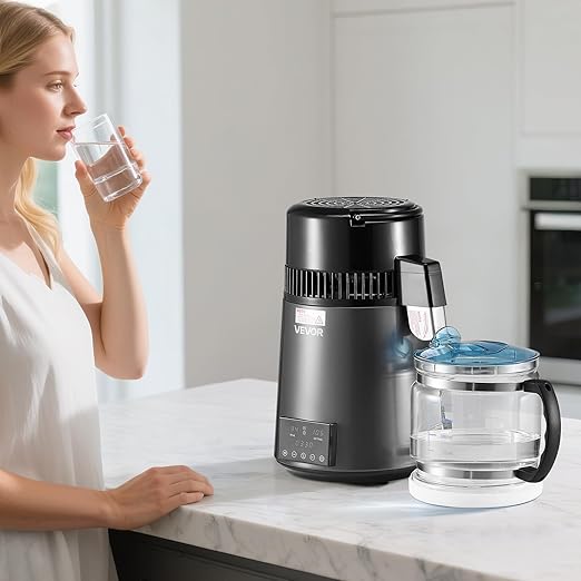 - High-Quality Materials: The distilled water maker features a 304 stainless steel interior water tank. The container is made of high borosilicate glass, with all parts in contact with water being of food-grade materials