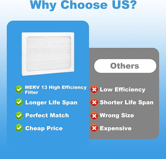 - 【MERV 13 FILTERING】MERV 13 rated filter helps removes airborne particles such as tiny particles, dust, smoke, fibers and pet dander, improving air quality in your home or office