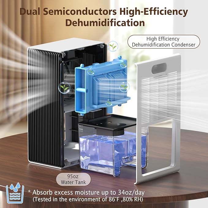 - ADVANCED HOME DEHUMIDIFIER: Our dehumidifier adopts semiconductor condensation technology with quiet operation. It efficiently removes moisture from the air to ensure a comfortable life.