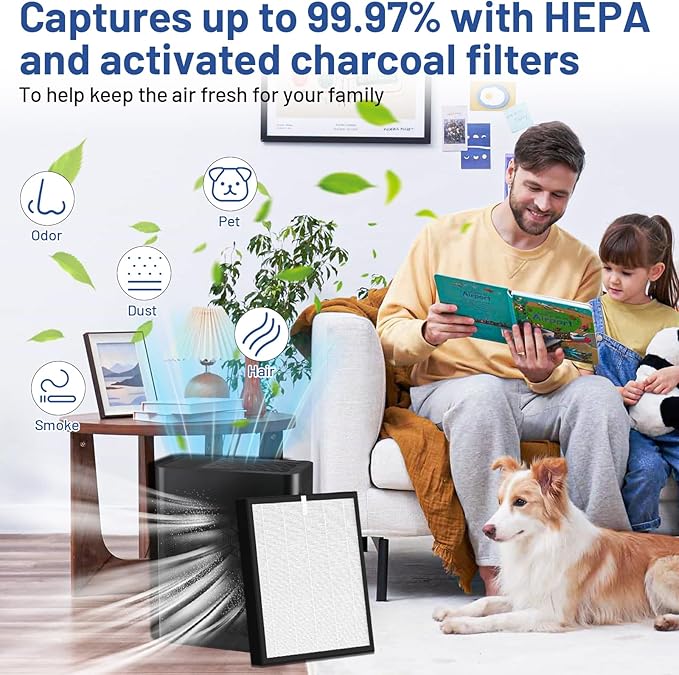- 3-IN-1 FILTER FILTRATION: The TZ-K2 replacement filter is high-efficiency 3-in-1 true HEPA filtration systems, including fine preliminary filter, H13 true HEPA filter and activated carbon filter. They can capture up 99.97% of all airborne particles down to 0.3 microns in the air like dust, hairs, lint. Activated Carbon Filter assists in neutralizing smoke and car exhaust. To provide you and your family with fresher air
