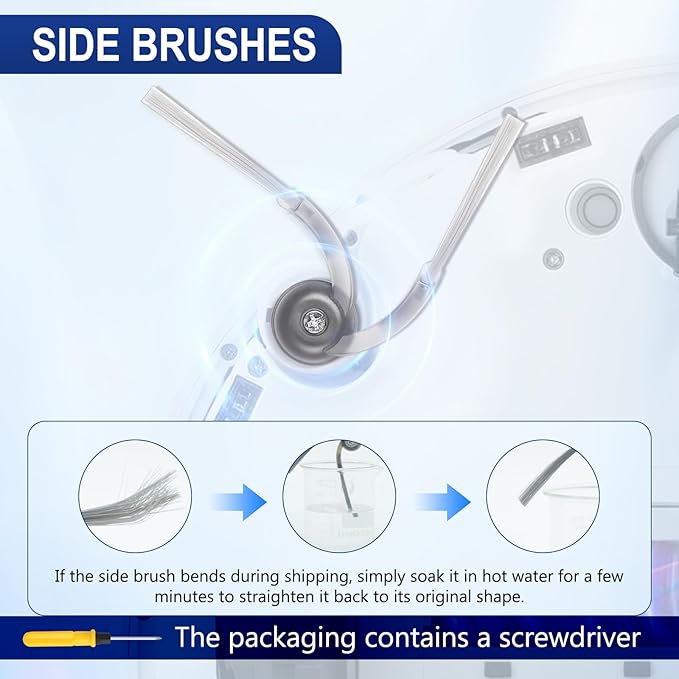 - 【GREAT VALUE PACK】The Qrevo Edge replacement attachment include 2 Set Mainbrushes, 6 Scent Tablets, 4 HEPA Filters, 6 Dust Bags, 6 Mop Pads, 6 Side Brushes, 1 Cleaning Brush, 1 Screwdriver