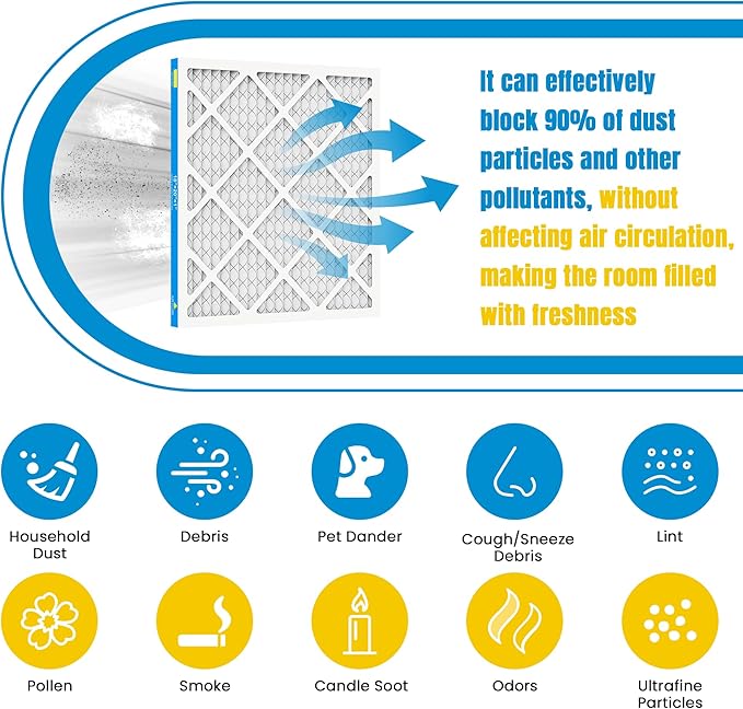 - 【MERV 8 Rated Filtration】Provides effective basic protection by capturing common airborne pollutants.Efficiently traps dust, pollen, pet dander,and other large particles (3-10 microns) to improve indoor air quality and safeguard your family's respiratory health