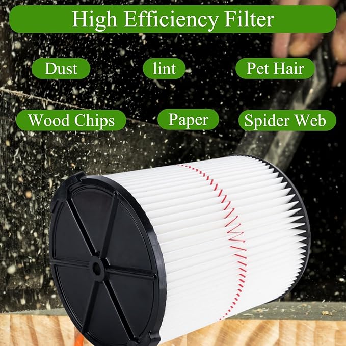 2 Pack CMXZVBE38754 Replacement Filter Fit for Craftsman Shop Vac Wet Dry 5 to 20 Gallon, 9-38754 Red Stripe General Purpose Wet Dry Vac Replacement Filter