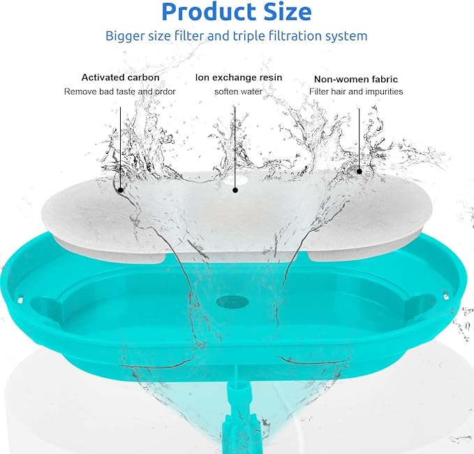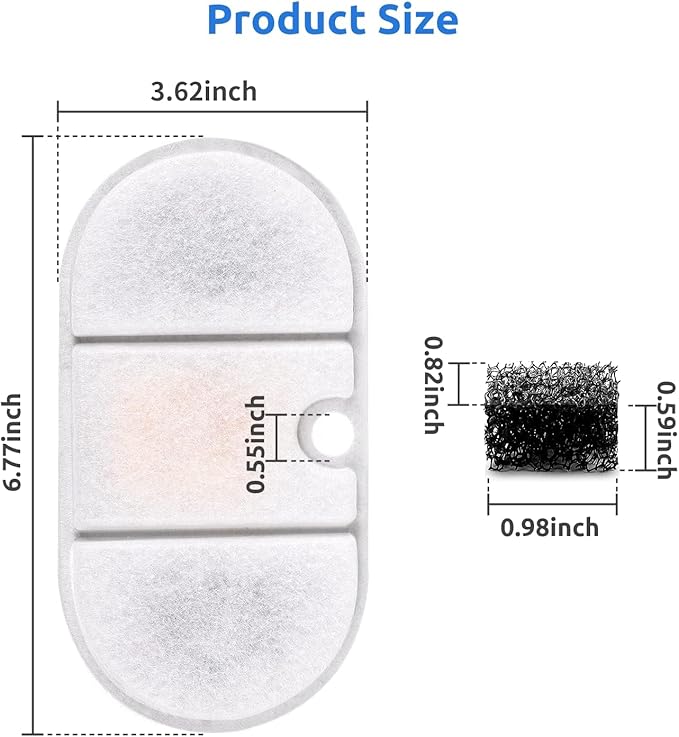 - 【Healthy Filter Material】: The pet fountain filters is composed of high-quality activated carbon and ion exchange resin to form a three-layer filtration system, they can filter hair and residue, absorb odors, soften water and achieve good purification performance.