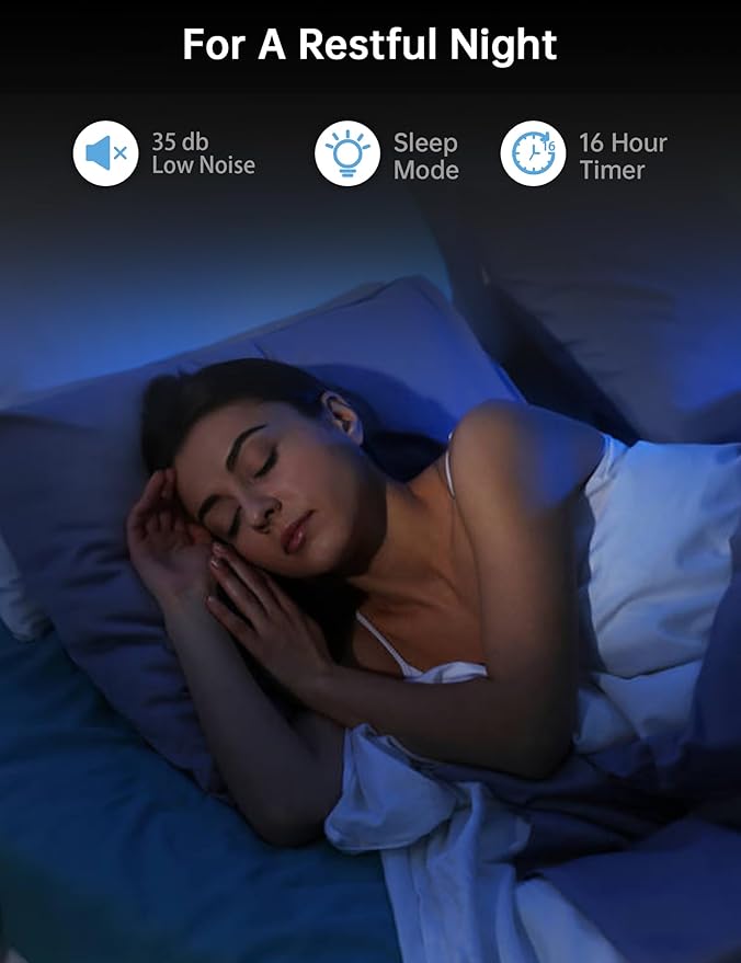 - 【Ultra-Quiet Sleep Mode & User-Friendly Operation】Get a restful night’s sleep with sleep mode: it reduces noise to just 35 dB and turns off all lights for zero distractions. Set the 1-16 hour timer for customized runtime. Effortlessly control all functions via the responsive touch panel or included remote. The convenient top-fill design makes refilling quick and easy.