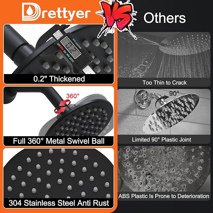- High-Quality Stainless Steel Material: This 6-inch shower head is crafted from premium stainless steel, offering not only durability and strength but also effective rust resistance, ensuring it remains as good as new even after prolonged use.