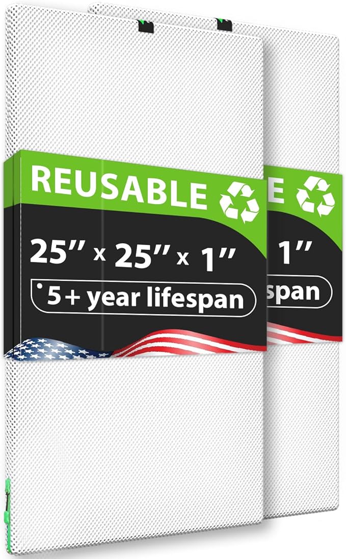 25x25x1 Air filter Pro Kit, Washable and Reusable Air Filter 25x25x1 for AC HVAC Furnace, MERV 8 Air Filters Machine Washable & Dryer Friendly, AC Furnace Air Filter, Include 2 Filters&1 Frame