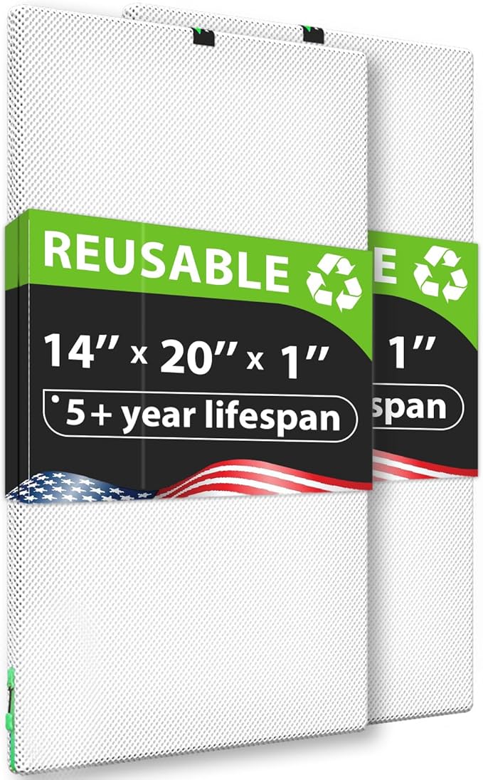 14x20x1 Air filter Pro Kit, Washable and Reusable Air Filter 14x20x1 for AC HVAC Furnace, MERV 8 Air Filters Machine Washable & Dryer Friendly, AC Furnace Air Filter, Include 2 Filters&1 Frame