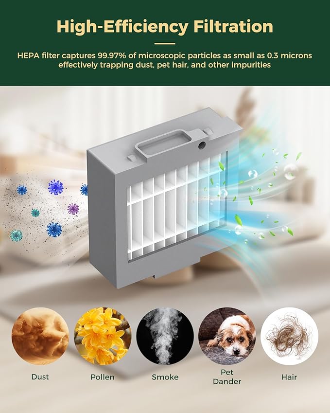 - [High Quality Filter and Dust Bag]The included HEPA filters capture 99.97% of microscopic particles (down to 0.3 microns). Large-capacity dust bag hygienic disposal of collected debris , and meets your long-term replacement needs
