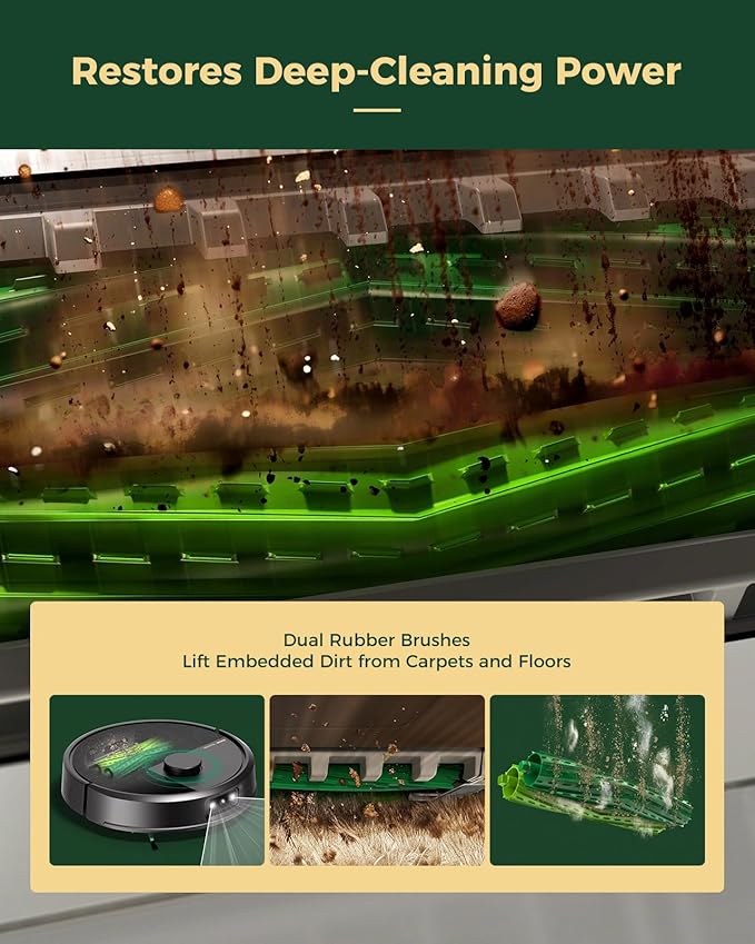 - [Superior Dual Rubber Roller Brushes] Double rubber brushes are made of wear-resistant material, which can work better coordinated and synergistically and keep the noise low, providing incredible cleaning results on carpets and hard floors