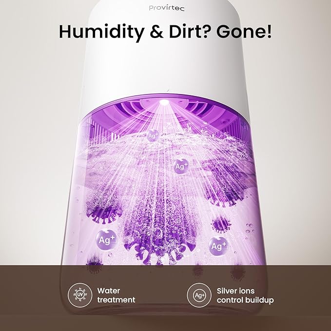 - Easy to Clean, No Leakage: Provirtec cool mist humidifier boasts an integrated, seamless water tank with no hard-to-reach corners—easy cleaning. The tank opening allows top-fill design prevents spills and reduces leaks