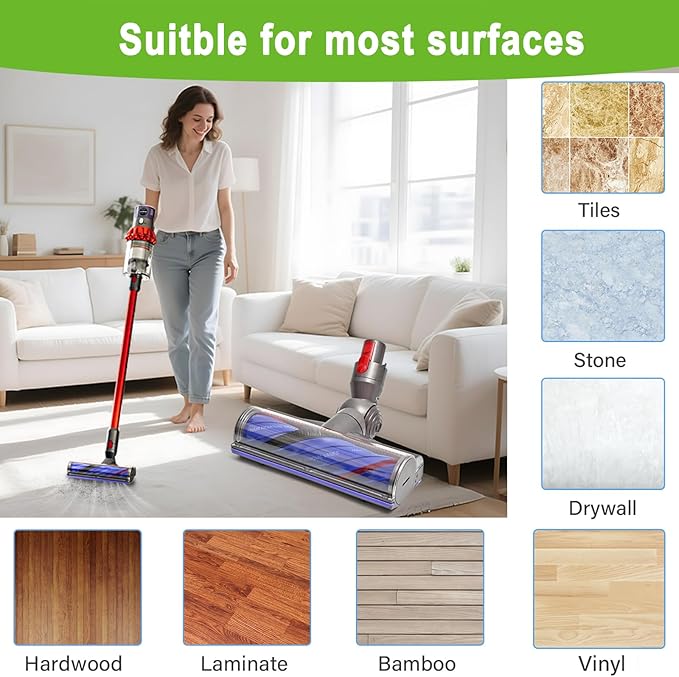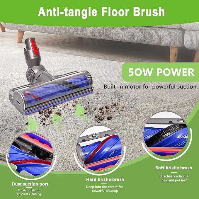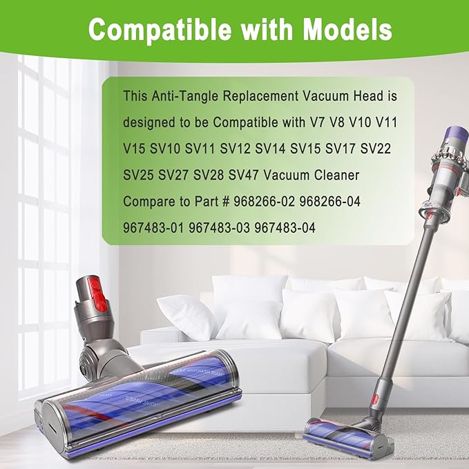 - 【Perfect fits】 This Anti-Tangle Replacement Vacuum Head is designed to be Compatible with Dyson V7 V8 V10 V11 V15 SV10 SV11 SV12 SV14 SV15 SV17 SV22 SV25 SV27 SV28 SV47 Cordless Vacuum Cleaner, Compare to Part # 968266-02, 968266-04, 967483-01, 967483-03, 967483-04(NOTE:Doesn't fit V6,V10SLIM,V12,Gen5,DC Series)