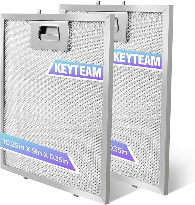 - Product dimensions:2 pieces of stainless steel oil fume extractor filters, Stainless steel adjustable clasp with reinforced frame for ultimate durability , 10.4" x 8.7" x 0.3", accurate size, easily purify grease and smoke