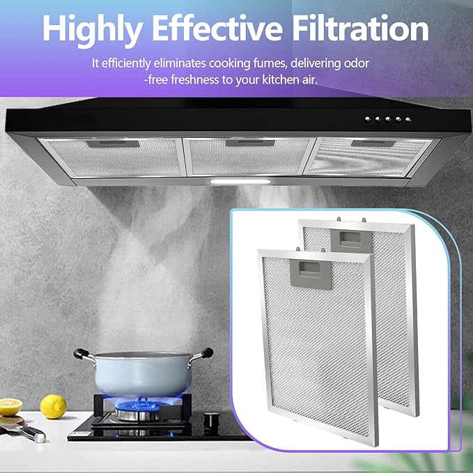 - Easy to Clean: Simply remove the filter, wash with warm water and degreaser to remove built-up grease, and extend its lifespan through regular maintenance.