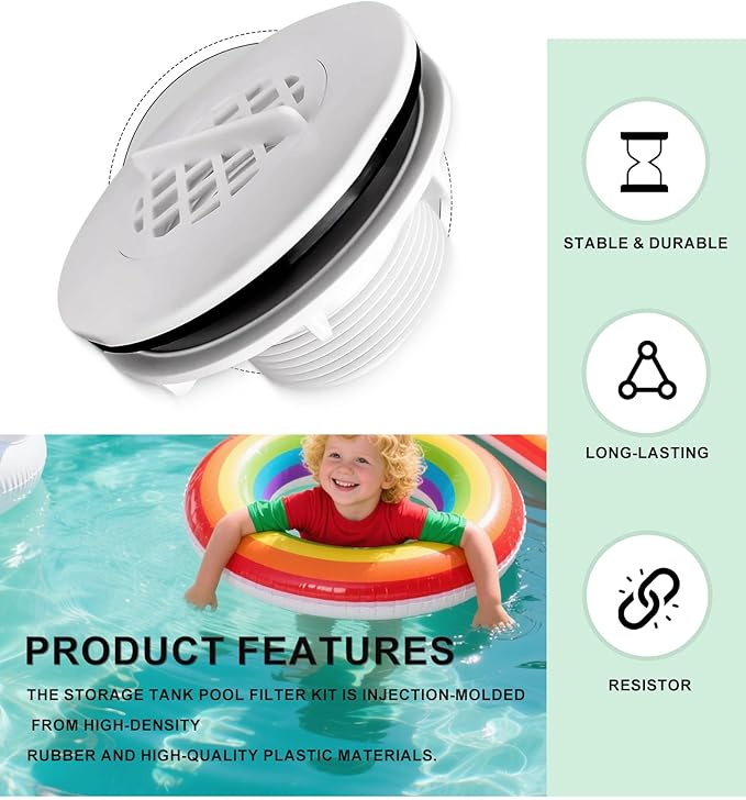 - Practical Application: The built-in strainer grid of pool inlet strainer regulate water flow velocity, preventing clogs from leaves, hair, and debris. Enhances water circulation while protecting your pump from damage.