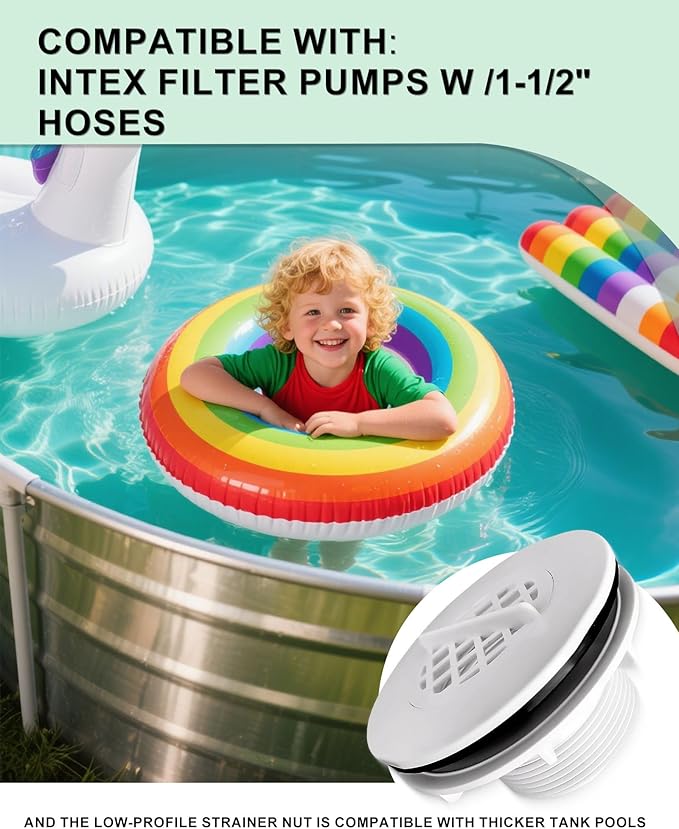 - Compatibility: The inlet strainer replacement parts are compatible with Intex 1500 GPH Cartridge Filter Pump (Model 635T), 2500 GPH Cartridge Filter Pump (Model 633T), etc. More compatible types please check detailed picture. Please note that our product is not sponsored or endorsed by, or affiliated with the brands it fits, including Intex.
