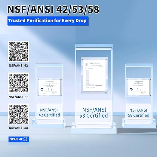 - NSF/ANSI 58–Tested/Verified by SGS against NSF/ANSI 58 standards, WINGSOL reverse osmosis water filter is certificated to remove over 99.99% of 1,000+ contaminants, including harmful chemicals, vířus, băcteria, heavy metals, and microplastics. Protect your family with safe, clean, and great-tasting water every day, knowing you’ve chosen a product that meets the highest global quality standards.