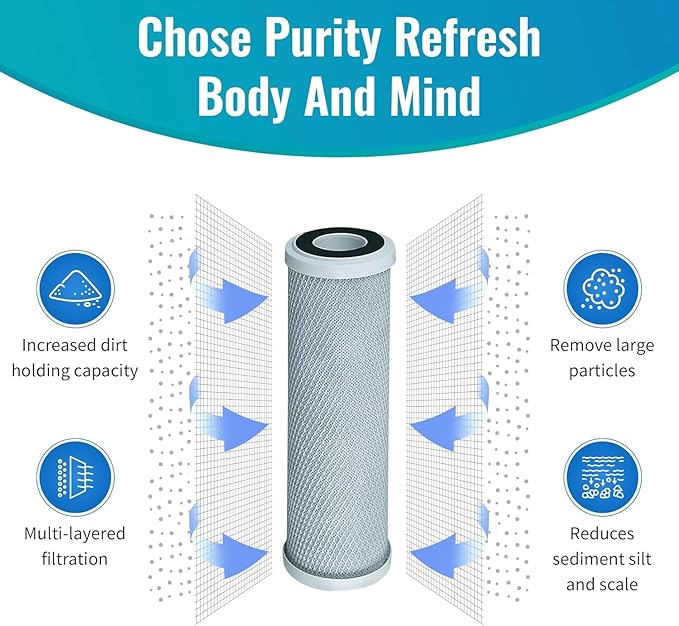 - Coconut shell carbon, universal 10 inch activated carbon block filter. Improves taste and clarity while retaining beneficial nutrients by reducing chlorine, fine sediment, odor, silt, rust.