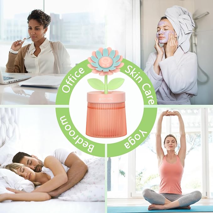 - Charming Flower-Shaped Design: The mini humidifier boasts a delightful sunflower shape, measuring 3.80"x3.80"x7.90" (LxWxH), making it a perfect addition to any room, desk, office, or car. This creative design not only adds necessary moisture to the air but also enhances your decor, making it an ideal gift for Christmas.