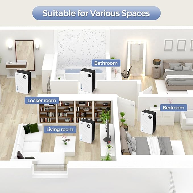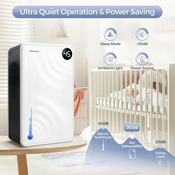 - 【Quiet Operation & 7 Colors Light】The dehumidifier for bedroom features an intelligent noise reduction system. You can enjoy quiet operation dehumidifier but never disturb your life under the ultra-quiet sleep mode(<30dB). In addition, bedroom dehumidifier also designed with soft lighting, 7 colors of lights creating a peaceful sleeping atmosphere for you. Also makes you clearly observe the humidity level operation of the dehumidifier even in a dark basement