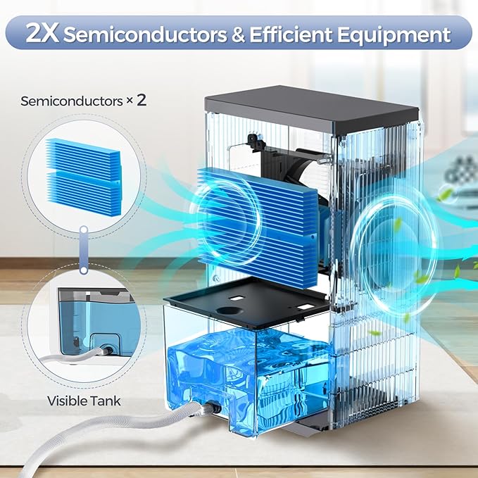- 【Efficient Dehumidification & Smart Control System】Upgraded with utilize semiconductor condensation technology, KeepGlad dehumidifier making quiet operation while efficiently extracts moisture from the air, also help reduce the humidity to 45%. Dehumidifiers for home features smart control system that you can set the different ideal mode. Tip: It is better to keep windows and doors closed while the dehumidifier is in use