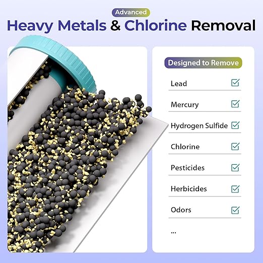 - Specialized Heavy Metals Filtration: The FG15B-KS filter in the WGB32B-KDS whole house water filter system targets chlorine, chloramine, lead, mercury, and hydrogen sulfide, ensuring comprehensive protection for your home’s water supply.